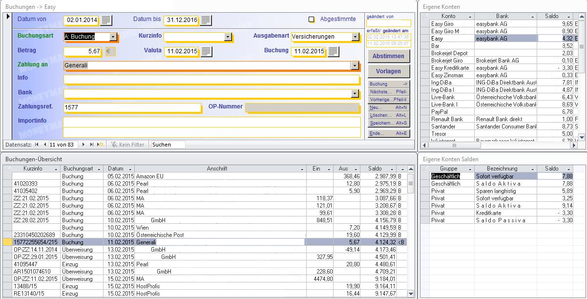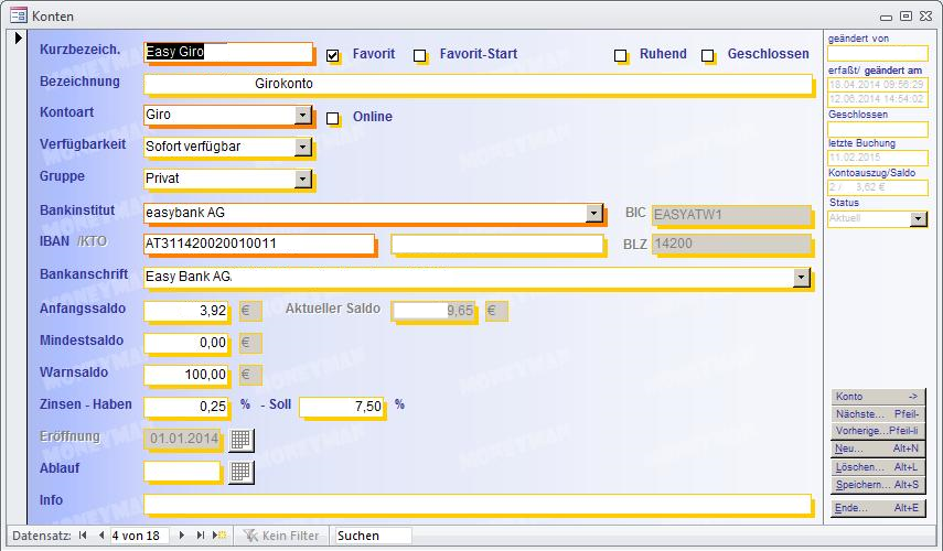 Bankinstitute sind weitgehend vorerfasst, können jedoch bei Bedarf beliebig